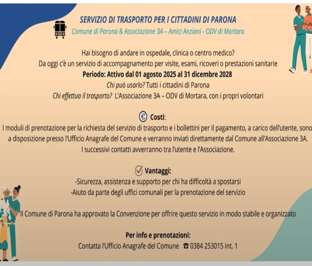 Il Trasporto sarà effettuato dall'Associazione 3A - ODV di Mortara