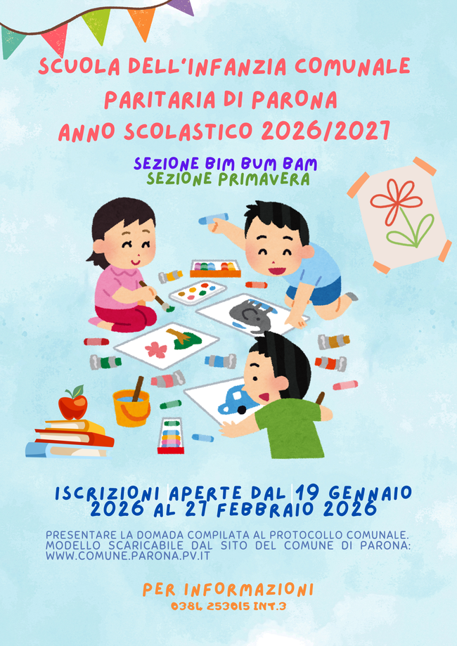 Iscrizioni Scuola dell'Infanzia Comunale Paritaria. Anno scolastico 2026/2027