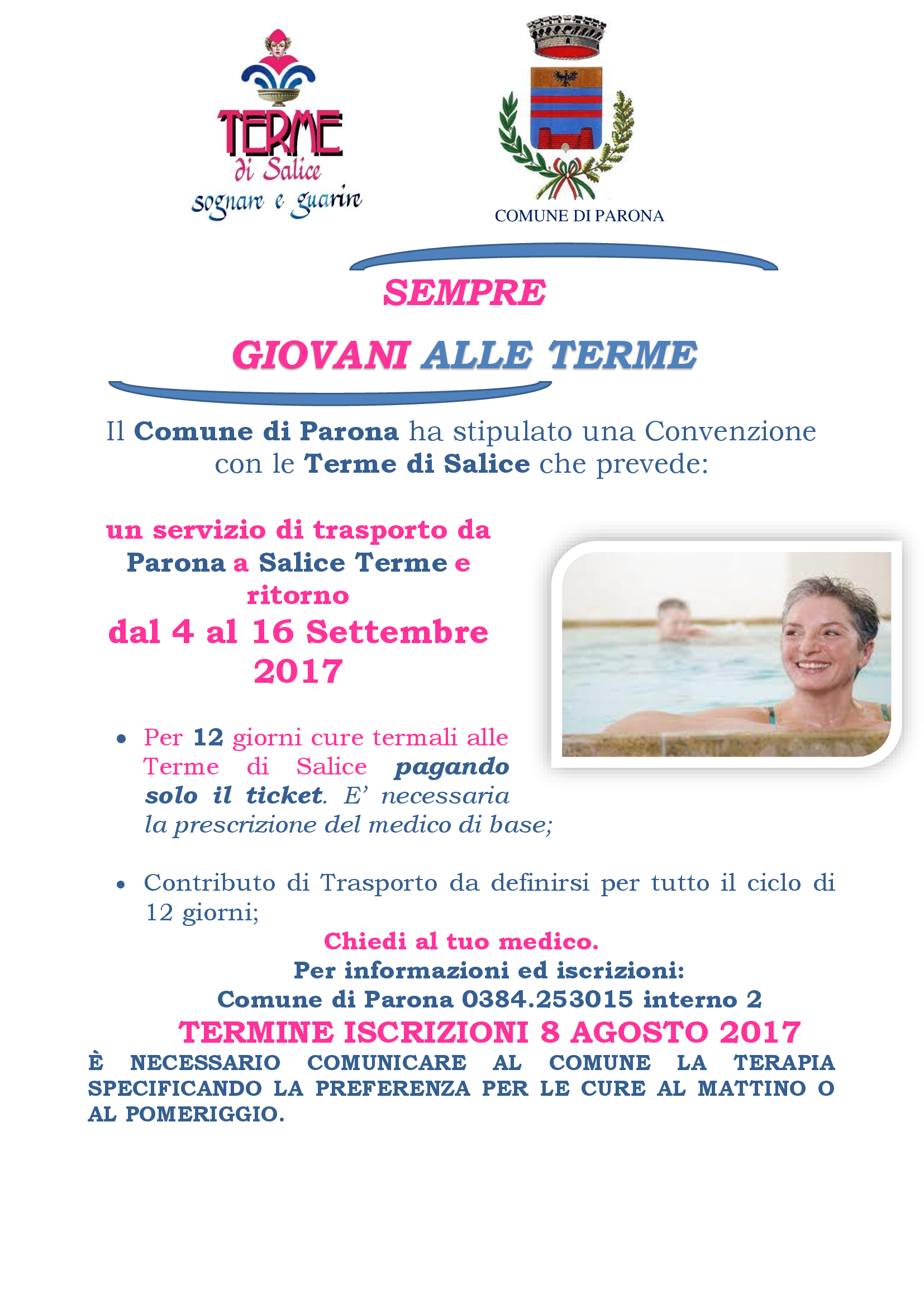 Il Comune di Parona ha stipulato una convenzione con le Terme di Salice che prevede: